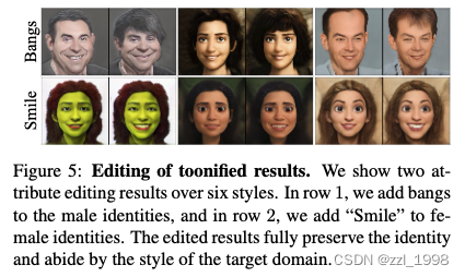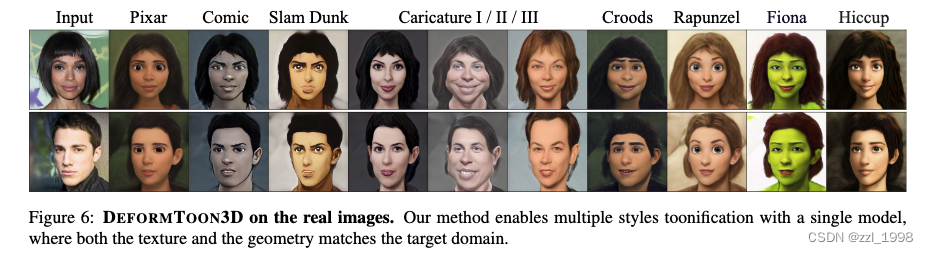 - Datasets:测试了10种风格:Pixar, Comic, Slam Dunk, The Croods, Fiona (Shrek), Rapunzel (Disney Princess), Hiccup Horrendous Haddock III (How To Train Your Dragon), and three different carica-ture styles;在CelebA-HQ上测试;