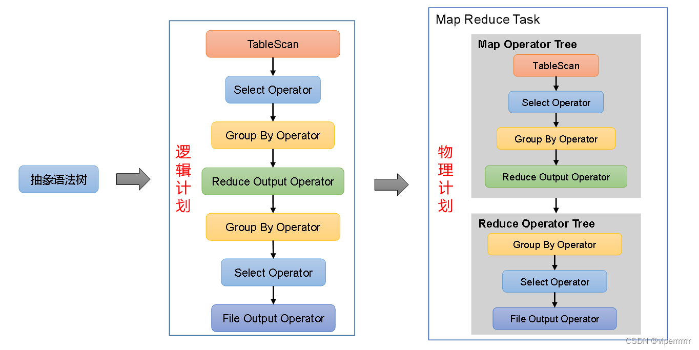 (3)逻辑计划生成器(Logical Plan Gen):将语法树生成逻辑计划