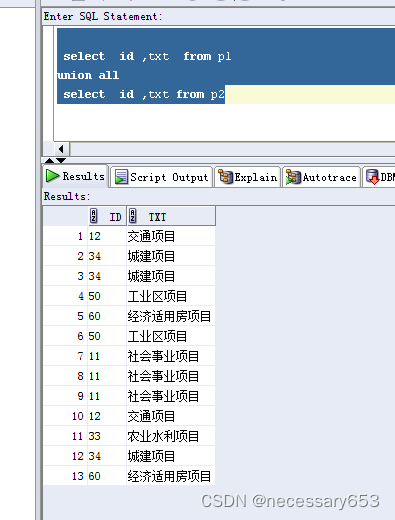 union all结果不去重效果