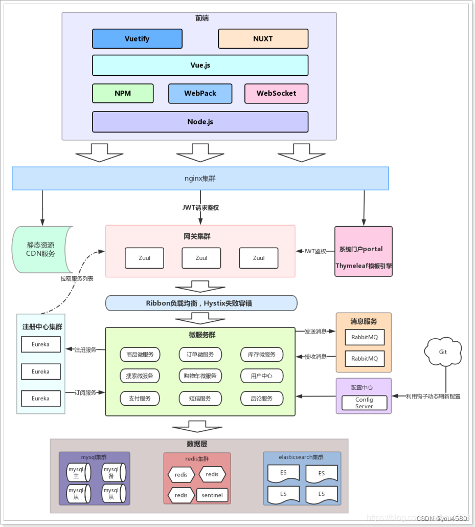 无论是前台还是后台系统,都共享相同的微服务集群,包括: