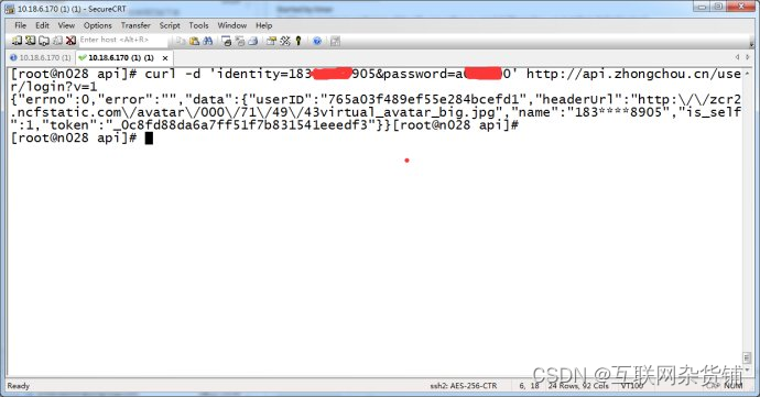 [root@n028 api]# curl -d ‘identity=1838905&password=a**0’ http://api.zhongchou.cn/user/login?v=1