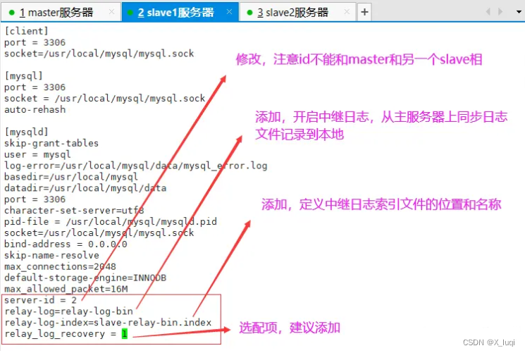 Slave1、Slave2 节点,开启二进制日志和中继日志。
