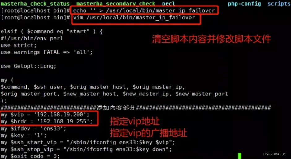 - ##(2)复制上述的自动切换时 VIP 的管理脚本到 /usr/local/bin 目录,这里使用master_ip_failover脚本来管理 VIP 和故障切换