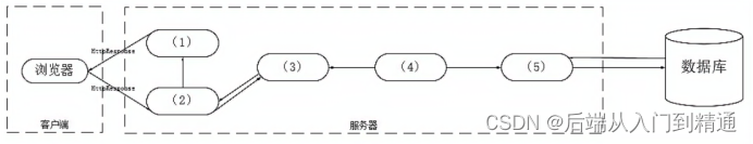 MVC架构中包含哪三种元素,它们的作用分别是什么?请根据图 2-1 所示架构将JavaEE 中 JSP、Servlet、Service、JavaBean、DAO 五种构件分别填入空 (1)~(5) 所示位置。