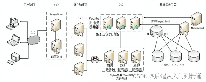某电子商务企业因发展良好,客户量逐步增大,企业业务不断扩充,导致其原有的B2C商品交易平台己不能满足现有业务需求。因此,该企业委托某软件公司重新开发一套商品交易平台。该企业要求新平台应可适应客户从手机、平板设备、电脑等不同终端设备访问系统,同时满足电商定期开展"秒杀"、"限时促销"等活动的系统高并发访问量的需求。面对系统需求,软件公司召开项目组讨论会议,制定系统设计方案。讨论会议上,王工提出可以应用响应式Web设计满足客户从不同设备正确访问系统的需求。 同时,采用增加镜像站点、CDN 内容分发等方式解决高并发访问量带来的问题。李工在王工的提议上补充,仅仅依靠上述外网加速技术不能完全解决高用户并发访问问题,如果访问量持续增加,系统仍存在崩溃可能。李工提出应同时结合负载均衡、缓存服务器、Web应用服务器、分布式文件系统、分布式数据库等方法设计系统架构。经过项目组讨论,最终决定综合王王和李工的思路,完成新系统的架构设计。