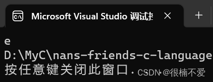 来看,我们选择的起始地为文件的首地址,偏移量为正则为右,为负则为左,所以此时指针从a开始向右移动四位,指向e,在通过fgetc函数进行输出,结果如下: