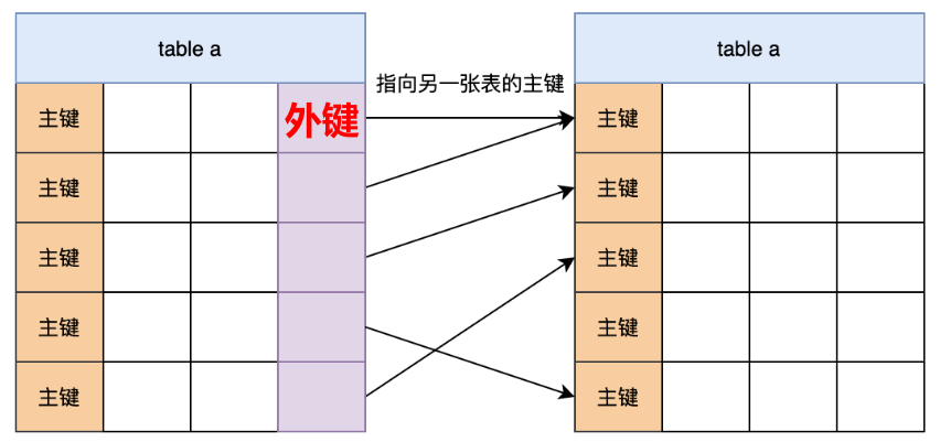 - 3NF:第三范式:满足第二范式的前提下,要求所有的非主键字段和主键字段之间不能产生传递依赖!即表中的非主键都直接依赖于主键,而不是通过其他列间接依赖于主键。也就是要消除依赖传递!传递依赖就是某个非主键字段依赖于主键,而有其他字段依赖于该非主键字段,这就是传递依赖!
