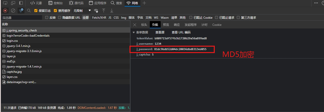 我们可以看到密码被加密,而且很明显是MD5加密,我们都不用去js逆向。