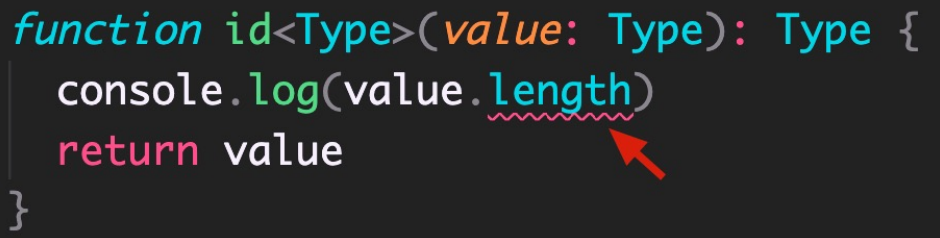 默认情况下,泛型函数的类型变量 Type 可以代表多个类型,这导致无法访问任何属性。比如,id('a') 调用函数时获取参数的长度: