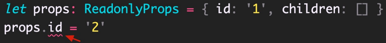 当我们想重新给 id 属性赋值时,就会报错:无法分配到 "id" ,因为它是只读属性。
