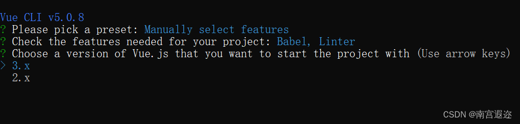 根据需求选择vue版本 ,以下都需要按需求选择,没有需求就默认回车