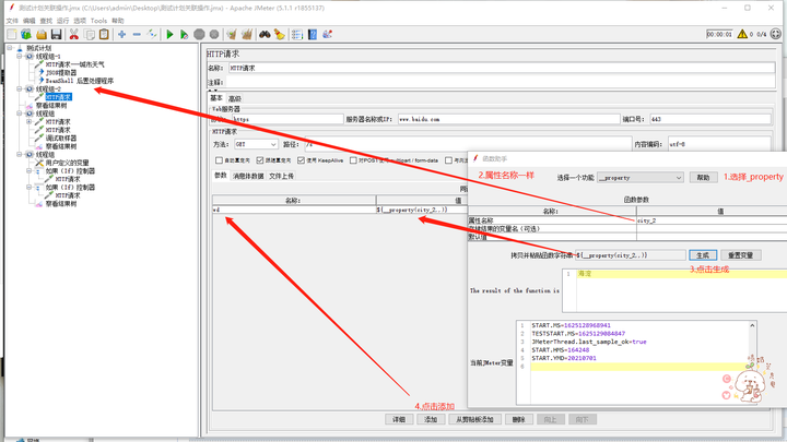 1.首先右键添加一个线程选择线程组,命名为线程组-1,添加取样器选择HTTP请求--城市天气