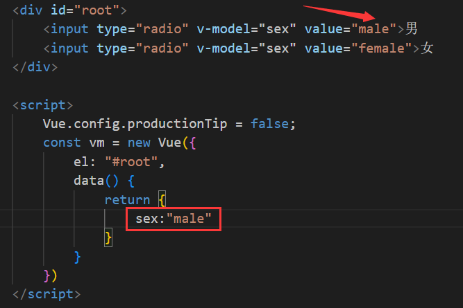如果我们想要设置初始值,可以直接给sex设置对应的value值: