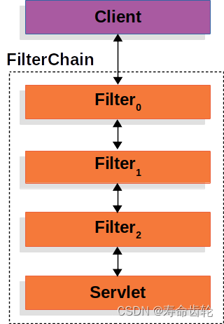 容器会提前创建好FilterChain对每一个请求进行过滤,FilterChain中包含Filter 实例和 Servlet(Spring MVC应用程序中,是 DispatcherServlet 实例。)。