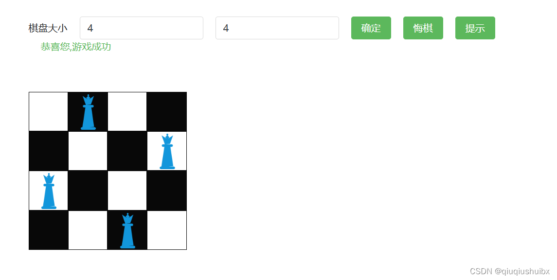 游戏规则是:在一个n*n的棋盘上,放置nge 皇后,要求每个皇后所在的一排一列并且对角线都不能存在皇后,放满n个皇后即为胜利.