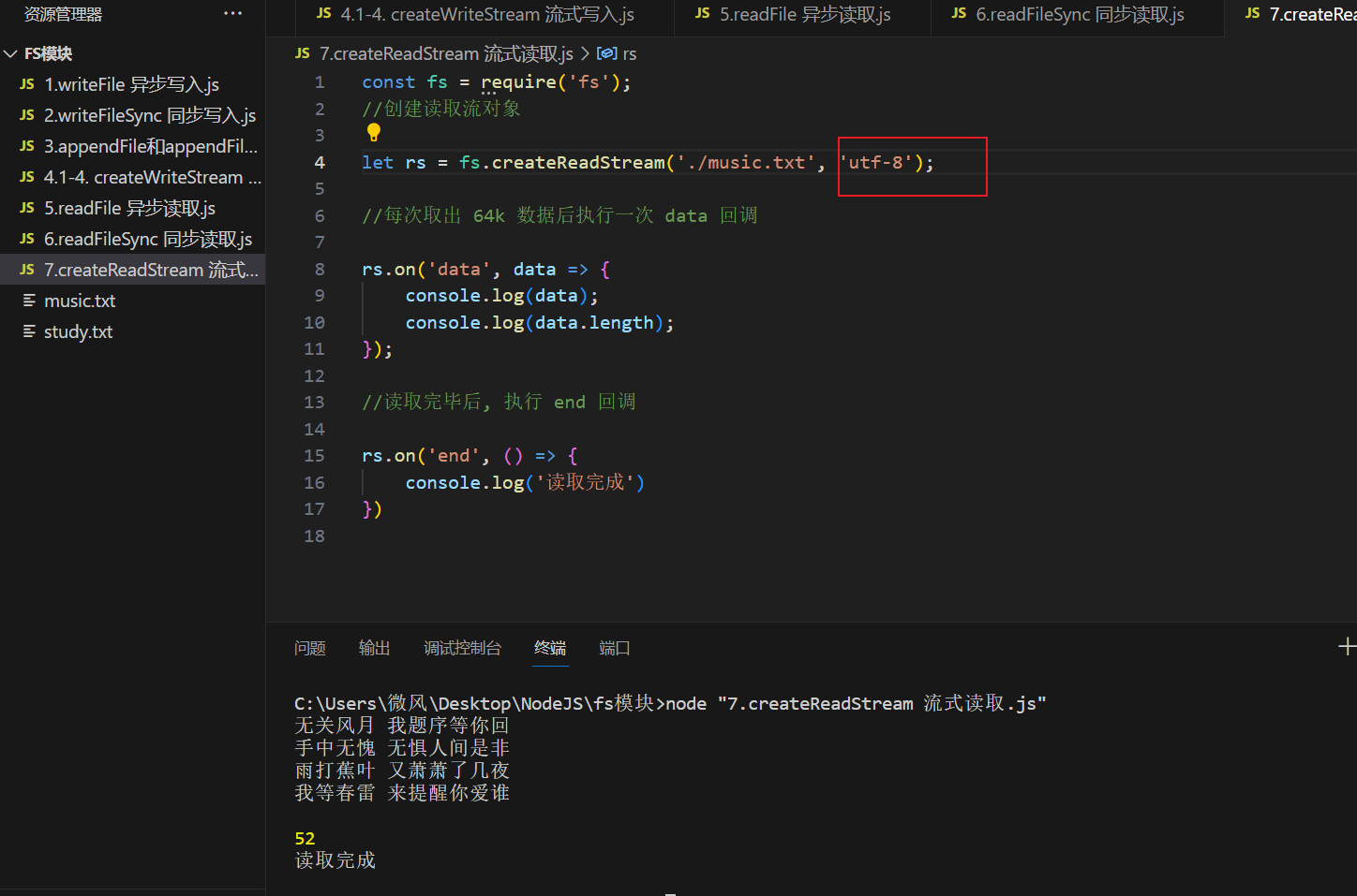 - let rs = fs.createReadStream('./music.txt', 'utf-8');