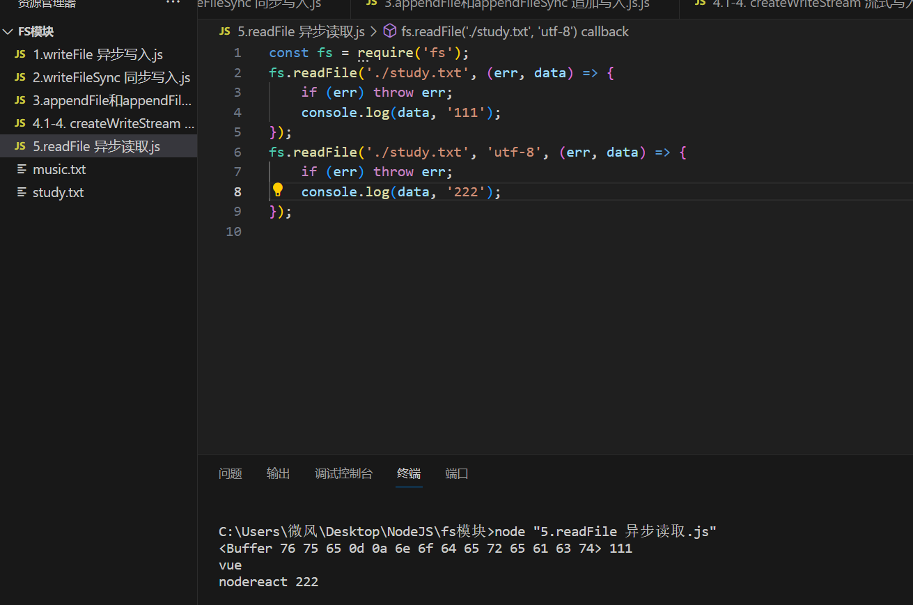 - fs.readFile('./study.txt', (err, data) => {