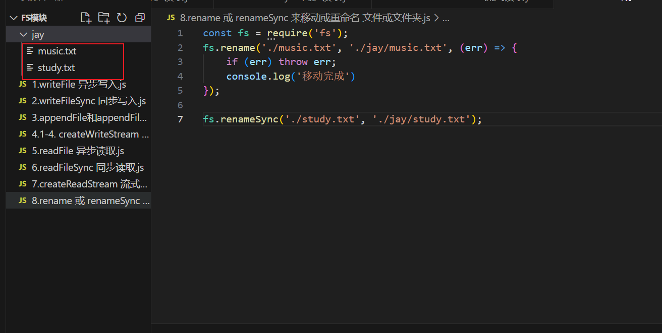 - fs.rename('./music.txt', './jay/music.txt', (err) => {