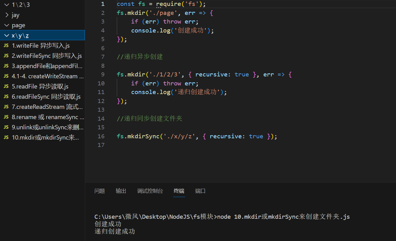 - fs.mkdir('./1/2/3', { recursive: true }, err => {