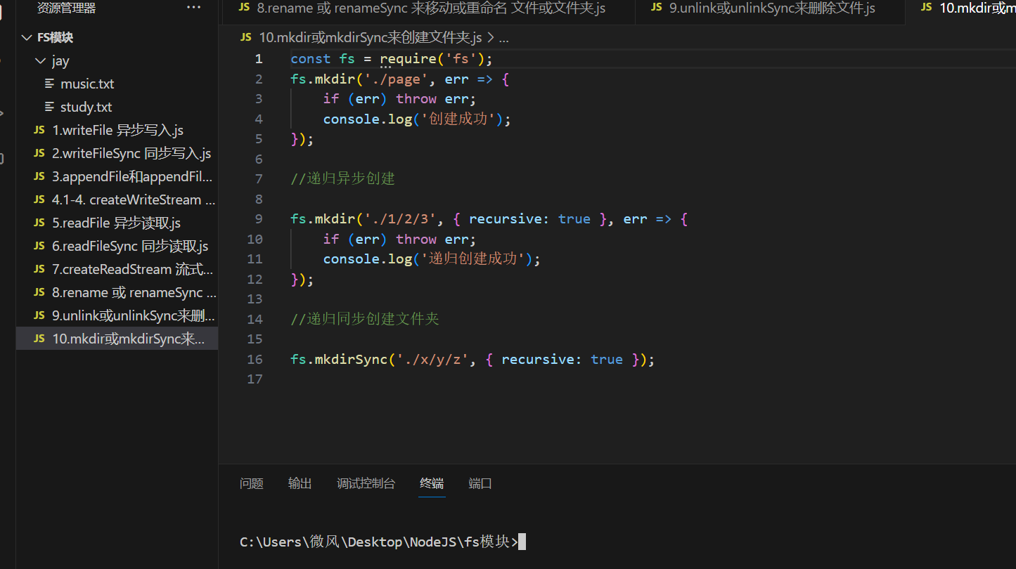 在 Node.js 中,我们可以使用mkdir或mkdirSync来创建文件夹 语法: