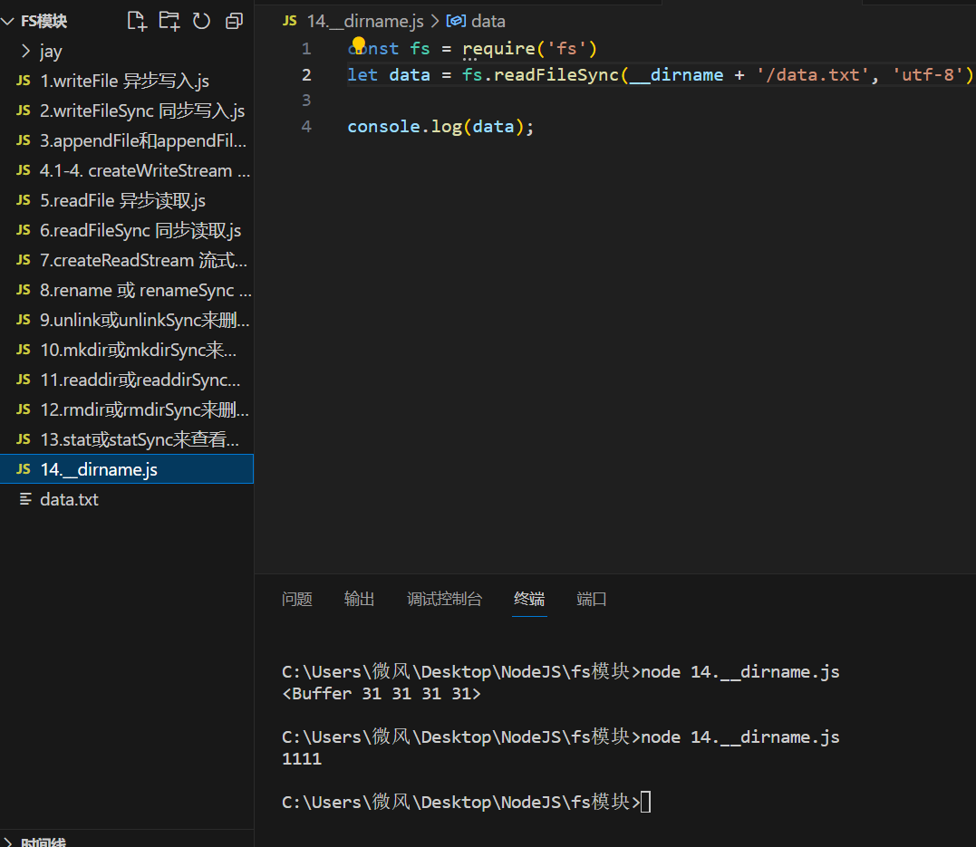 使用 fs 模块的时候,尽量使用 __dirname 将路径转化为绝对路径,这样可以避免相对路径产生的 Bug