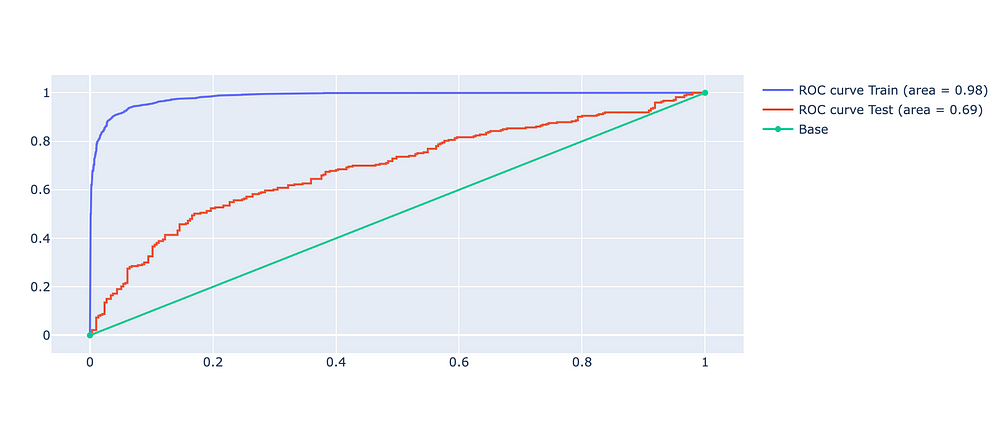 结果显示该模型比我预期的要好得多,测试ROC AUC 为 0.69。虽然这并不是一个令人惊叹的 ROC 分数,但看到财务数据的这种结果给我留下了深刻的印象。财务数据具有令人难以置信的随机性,并且很难预测结果。任何比抛硬币更好的事情都被认为是我们交易策略中的优势。