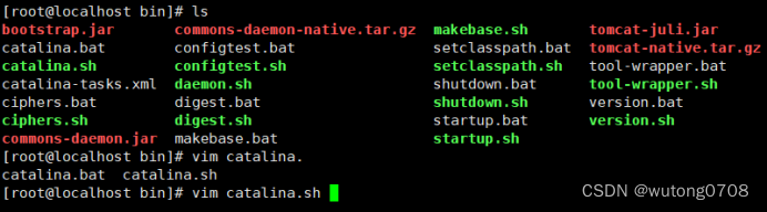 Bin:存放启动或者关闭的tomcat的脚本文件,startup.sh shoutdow.th