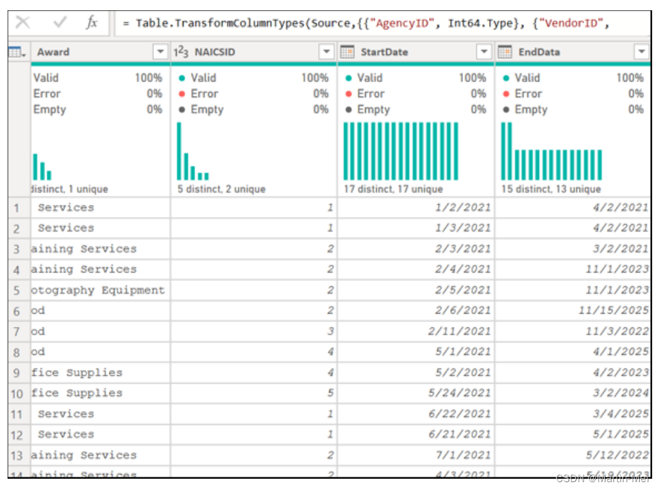 重要。再看一下图8-13所示的奖励列表表。您可以看到,该示例提供了NAICS代码ID来处理奖励的精细分类。按粒度较低的字段(如StartDate或EndDate)筛选数据可能会有所帮助。尽管如此,它并没有提供一个明确的结果集。响应范围很广,如图8-14所示。根据与NAICS代码表的关系,按NAICS代码ID进行筛选提供了更精细的数据集。