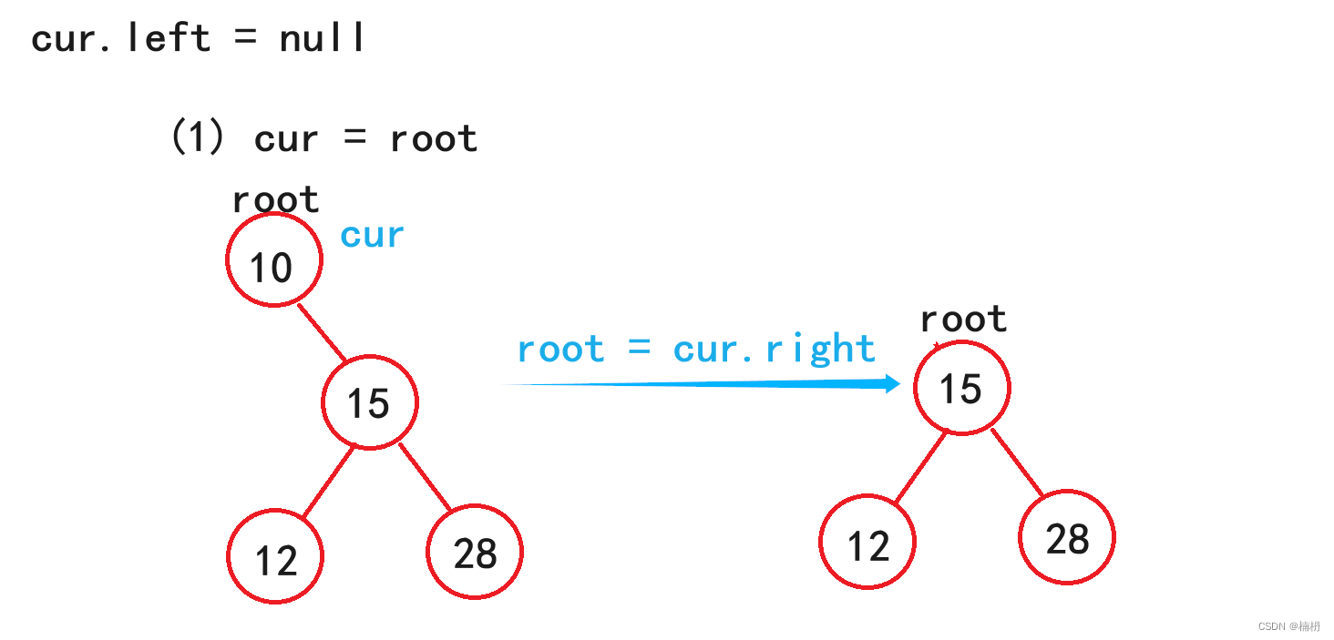 (2)若cur != root 且 cur = parent.left ,则parent.left = cur.right