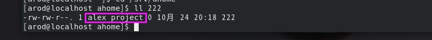 测试一下,在alex建立文件,让arod去处理这个文件。(这个文件属于组alex, arod对它是其他人身份只有可读权限r)