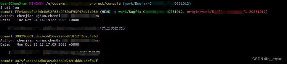撤销后再次git log查看是否撤销成功