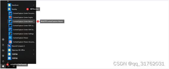点击桌面左下角开始,展开Bently,单击打开ContextCapture Master主模块。