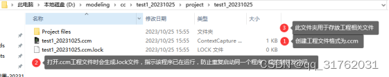 新建工程完成后.ccm格式的工程文件会存放在工程文件夹下,打开工程文件时同级目录下会生成.lock文件,表示该程序已在运行,以防止重复启动或控制并发访问。