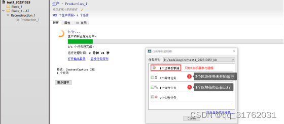 点击【监视任务序列】,在弹出的任务序列监视器中可查看运行中的任务和排队的任务,以及参与重建的机器数量。
