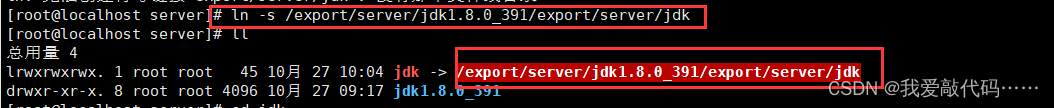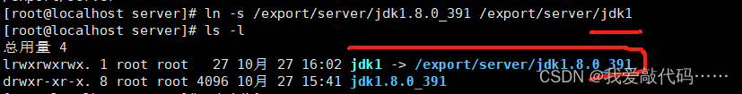 这个是改名字得到的结果,暂时还不知道什么原因出错,改过名字就成功了 ln -s /export/server/jdk1.8.0_391 /export/server/jdk1