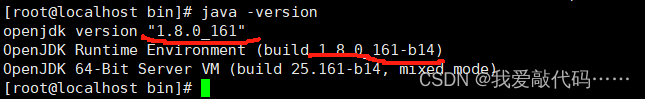 11.再次查看java版本,发现和自己下载的版本不一样,因为这个是系统自带的,