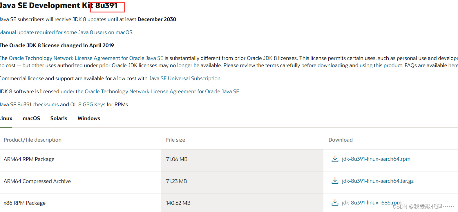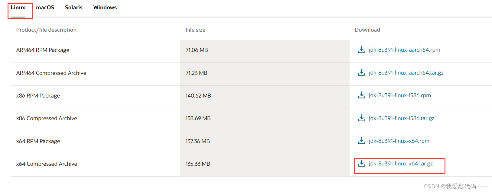 2.找到Linux,找到jdk-8u391-linux-x64.tar.gz