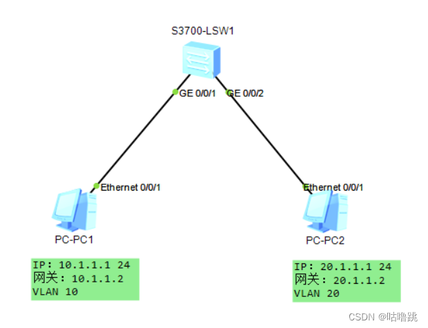 我们构建如下拓扑,并配置好Access的用户接入和到设备的Trunk功能: