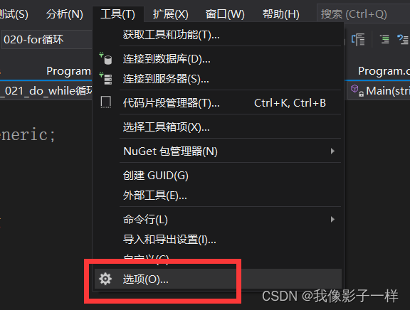 1、进入VisualStudio主界面点击工具——>再点击选项