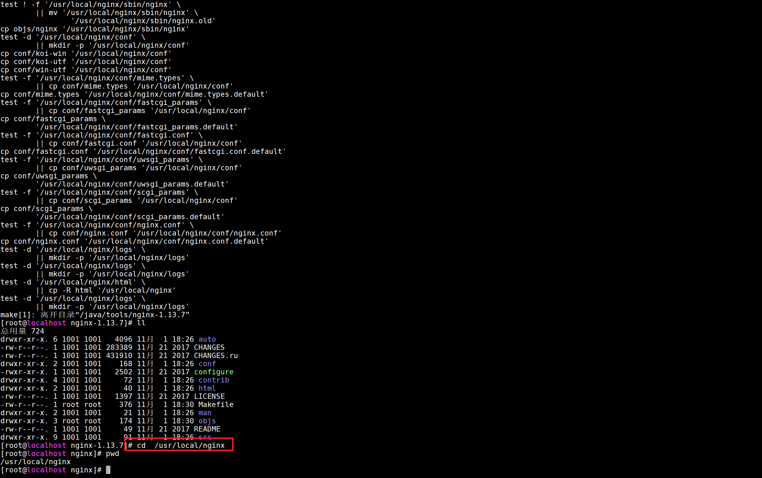 安装好的 nginx 服务在 /usr/local/nginx 下