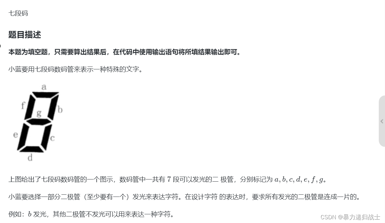 总共七个二极管,每一个都可以选或不选,列举完七个二极管选或不选后,判断选好的二极管有没有连成一片(如果只选了一个那就不用判断)。