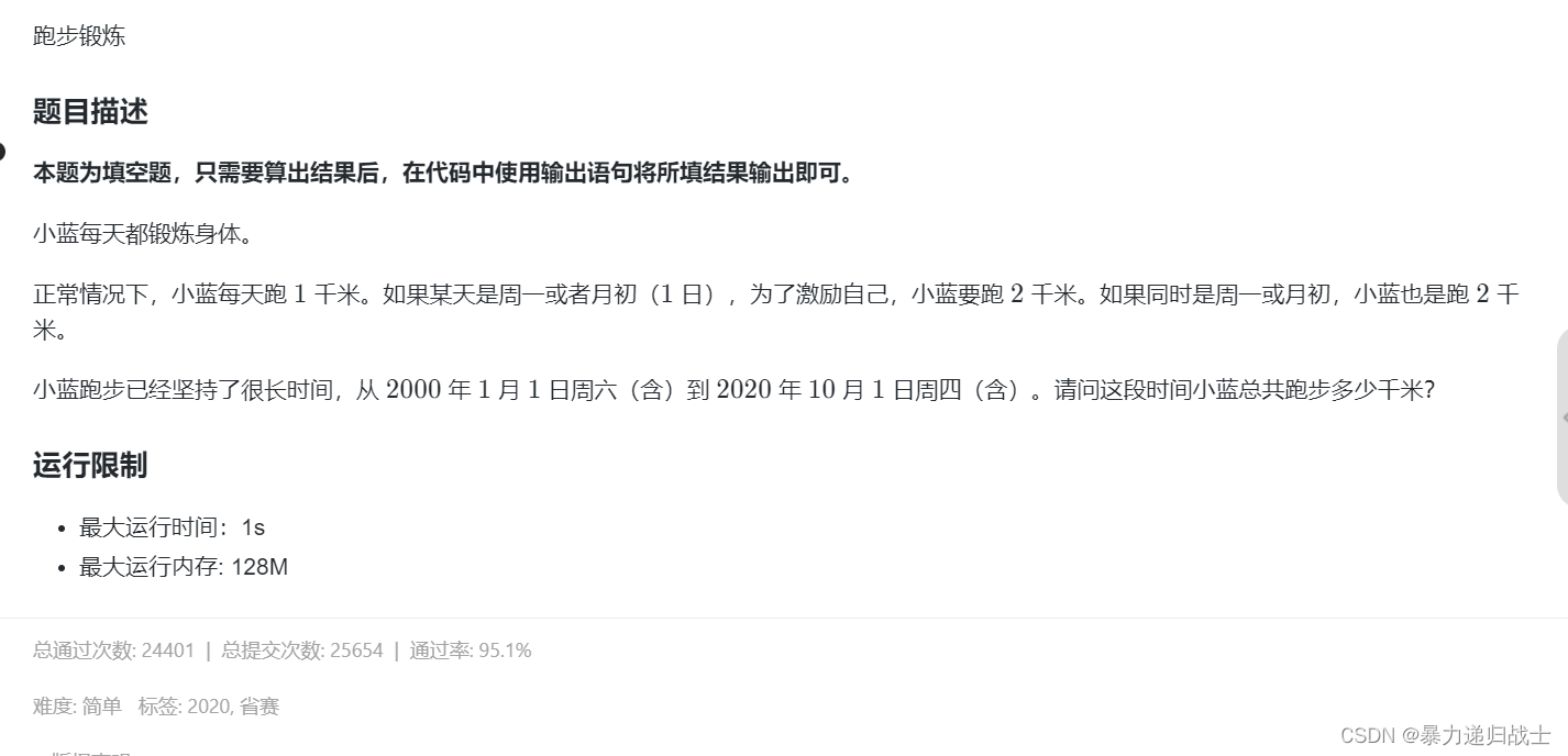 遍历2000.1.1到2020.10.1的每一天,周一或初一就+2,否则+1,最后输出。