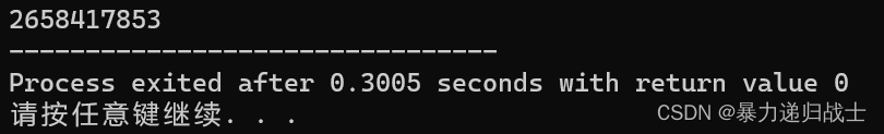 这个代码直接提交会超时,估计是递归次数太多,但是题目要求输出结果即可。所以我们可以在dev上先运行出结果,然后直接提交输出那个结果。