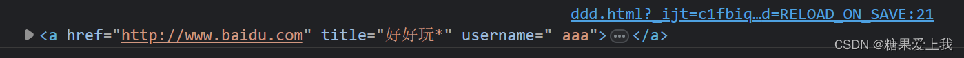 html> <html lang="en"> <head> <meta charset="UTF-8"> <title>Titletitle> <body> <div id="d1">div> <script> // 创建a标签 var div = document.getElementById('d1'); // 增加属性 a.title = '好好玩*'; a.setAttribute('username', ' aaa'); a.getAttribute('username') a.innerHTML = '一定要开心鸭~