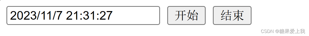 html> <html lang="en"> <head> <meta charset="UTF-8"> <title>Titletitle> <meta name="viewport" content="width=device-width, initial-scale=1"> head> <body> <input type="text" id="i1"> <button id="b1">开始button> <button id="b2">结束button> <script> var t; //全局变量 function showTime() { var i1Ele = document.getElementById('i1'); var time = new Date(); //现在的时间 i1Ele.value = time.toLocaleString(); } showTime(); //调用 var b1Ele = document.getElementById('b1'); b1Ele.onclick = function (ev) { if (!t){ t = setInterval(showTime,1000) //每隔一秒刷新一次 } }; var b2Ele = document.getElementById('b2'); b2Ele.onclick = function (ev) { clearInterval(t); //清除定时器 t = undefined //什么都没有 }; script> body> html>