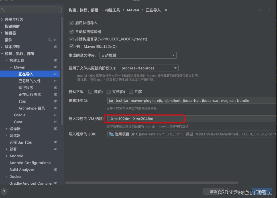 修改maven Importing的