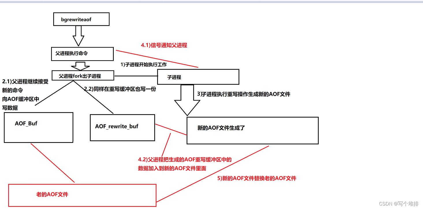 3)function(data,status){把重写缓冲区中的数据写到新的AOF文件中},子进程进行信号发送,父进程提前准备好信号处理函数