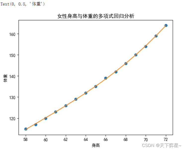 - plt.title("女性身高与体重的多项式回归分析")
