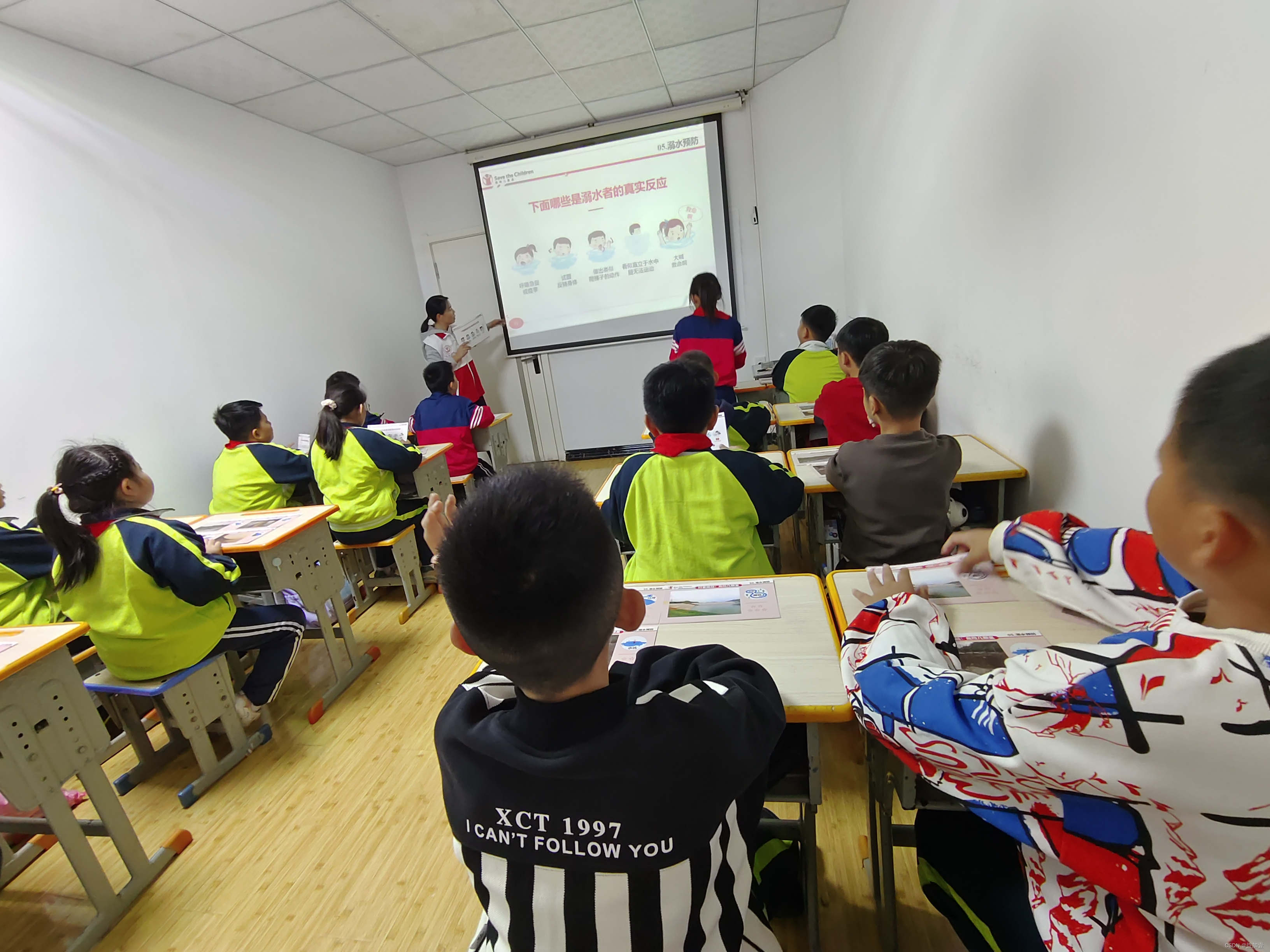 志愿者武红芝老师给孩子们学习防溺水安全课程。